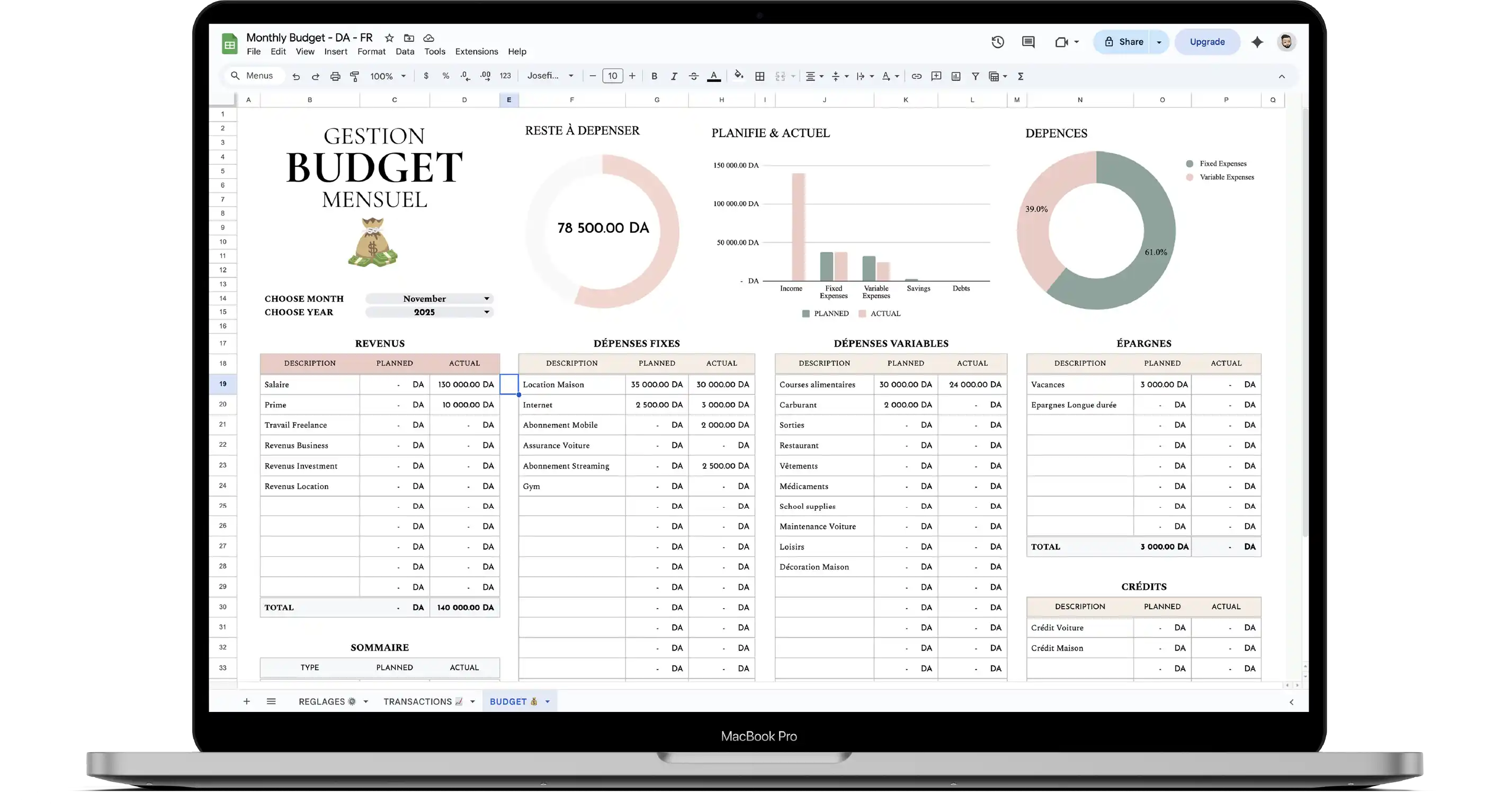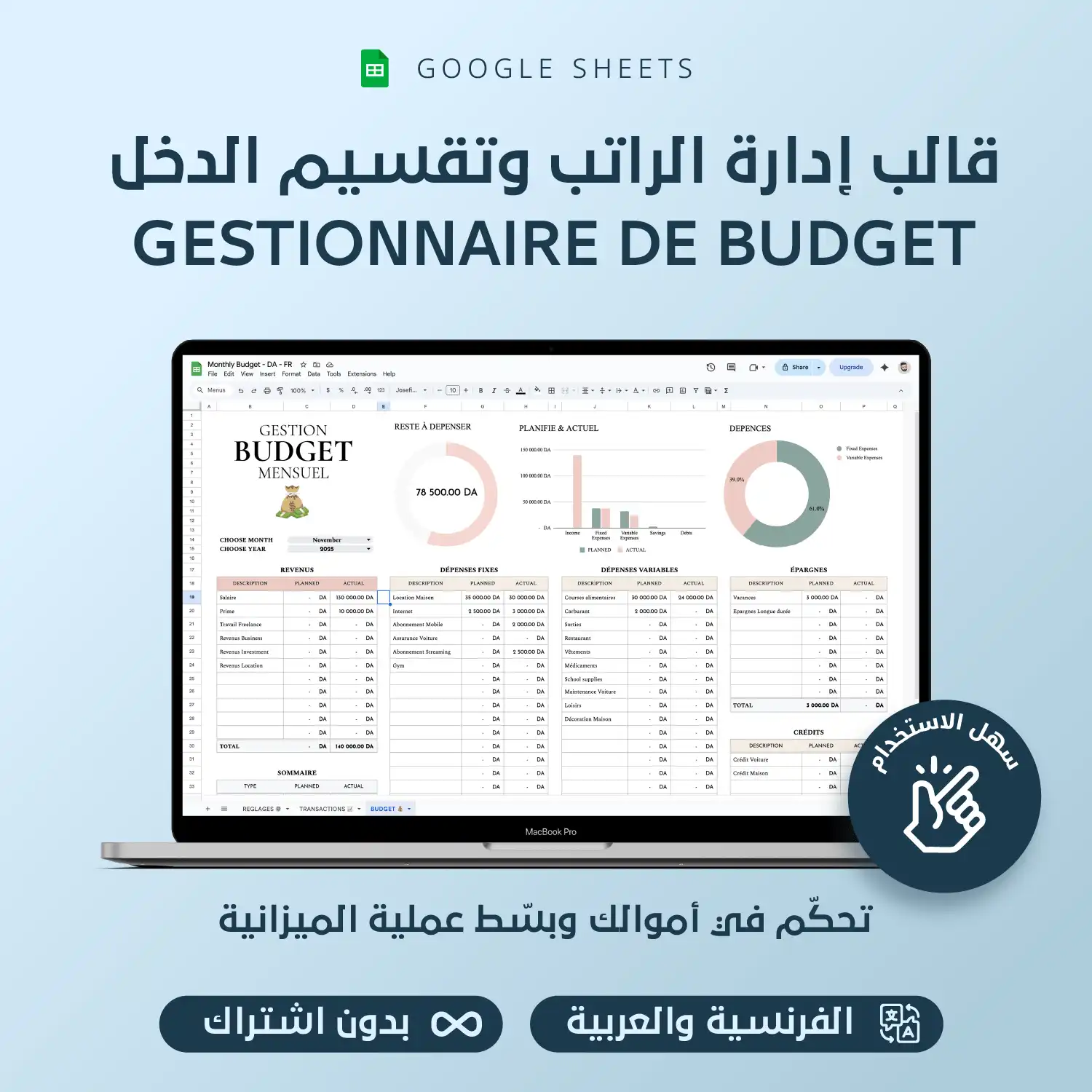"قالب إدارة الميزانية" هو ملف Google Sheet تفاعلي مصمم باحتراف ليساعدك على إدارة أموالك بدقة وسهولة. سواء كنت شخص أعزب أو متزوج، مبتدئ أو خبير، هذا القالب يساعدك في تخطيط ميزانيتك السنوية والشهرية خطوة بخطوة.